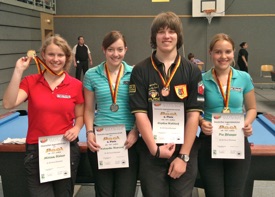 In der letzten Disziplin 9-Ball gab es noch einmal 4 Medaillen für das Mittlere Rheinland. Gold gewann Sabrina Hammer, Silber ging an Linda Vetten und Bronze an Pia Blaeser und Miriam Steiner.